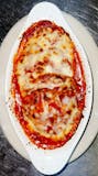 Lasagna, manicotti, spinach ravioli with marinara sauce and mozzarella cheese.
